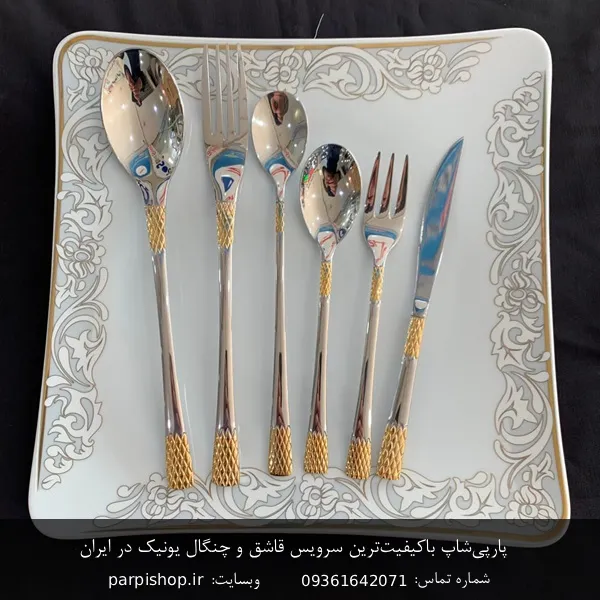 - سرویس قاشق و چنگال طلایی برند یونیک طرح دونا با طراحی لوکس