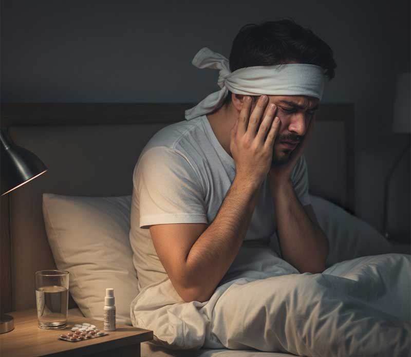 - پرهیز از دراز کشیدن مطلق: هنگام استراحت، سر خود را کمی بالاتر از بدن نگه دارید تا فشار خون در ناحیه سر و دندان کاهش یابد و از تشدید درد جلوگیری شود.